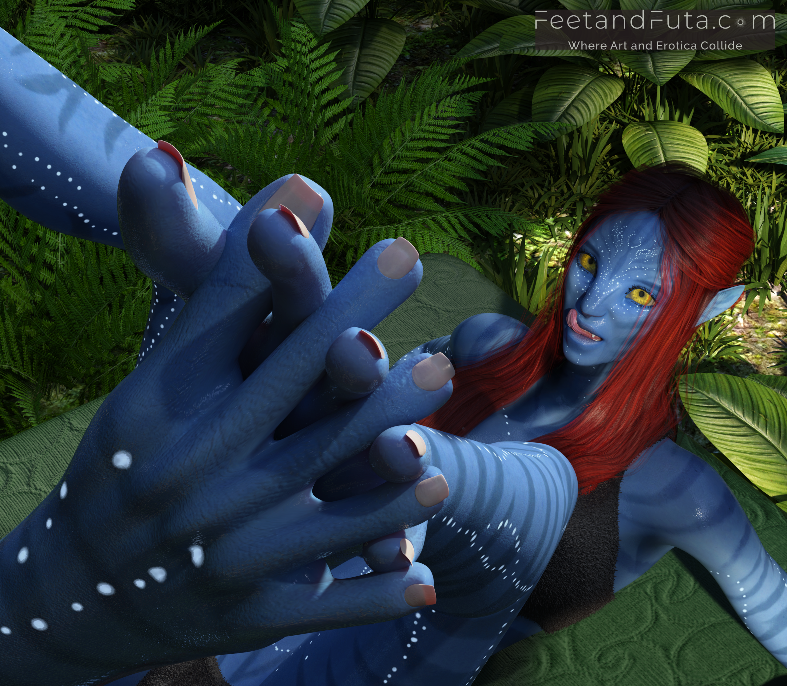 Return to Pandora in this steamy, hilarious Avatar parody! Na’vi futanari lovers Sevenari and Eneteke reunite after a year apart, unleashing explosive passion in this ultra-erotic 250-image narrated visual novel. Dive into feet-focused foreplay—from sensual bikini pinups and worship to intense footjobs—before massive futacocks lead to auto-fellatio, mutual teasing, and Eywa-blessed, multi-orgasmic intercourse with volcanic climaxes. Close-ups capture every ecstatic expression. Engineered over thousands of hours, this feet + futanari masterpiece is built to be an evergreen classic for fans of sultry storytelling and powerful releases. Sync your finish to theirs!